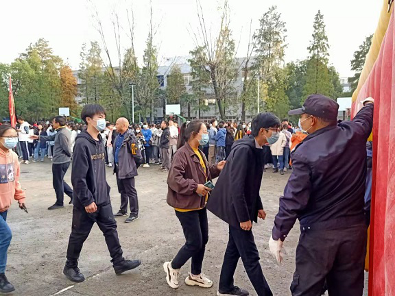 11月19日(周四)下午3:40点,学校保卫处、学工部联合组织在西校区开展2020级系新生消防培训演练活动,保卫处副处长朱行书、保卫处消防科、学工部武装工作办公室及部分学生辅导员指挥组织实施,西校区2020级新生1500余人在西校区篮球场进行了消防知识宣讲、气垫屋逃生体验和灭火器实操演练。