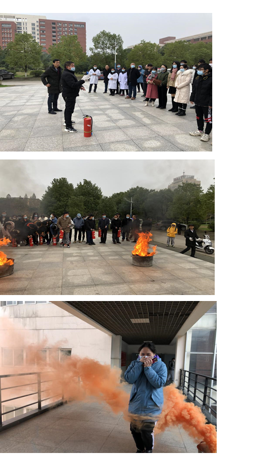 疏散演练结束后,组织参训人员进行灭火器实际操作演练,由消防科燕俊讲解相关常识,内容包括火灾的报警方式、常见消防器材的使用方法及初始火灾的扑救等。而后组织在场学生和教师使用常见灭火器,对初起火情实施扑救。