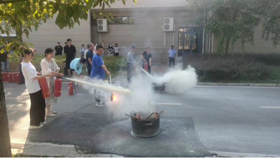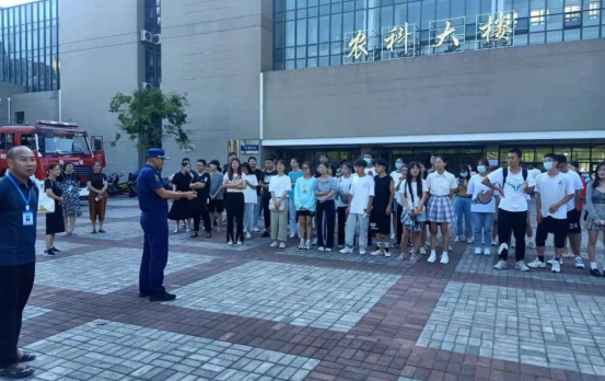 讲座结束后在农科大楼前集合进行灭火实际操作演练,提高了师生们的消防应急能力,懂得了如何处置初起火情。
