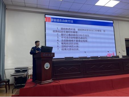 为加强学校安全工作,增强消防意识,进一步培养消防重点部位教职员工在突发性灾害发生时,掌握有关灭火、防火及逃生知识技能。2022年11月22日,学校邀请荆州区消防救援大队副大队长杨帆同志来校,对图书馆、档案馆、期刊社、审计处、离退休服务处的部分职工进行了消防优质课及灭火演练活动,参加的职工有70余人,活动由保卫处副处长朱行书主持。