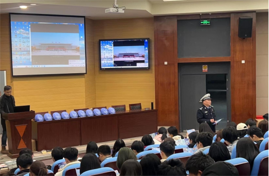 2023年3月2日学校保卫处邀请荆州市交警一大队副大队长刘义军同志来校开展交通安全专题讲座,农学院组织约180名学生参加了此次教育活动。刘义军同志以道路交通安全法基础知识、电动车上路注意事项和安全事故警示等为主要内容,详细讲解了交通安全相关知识,并希望广大学子们能够重视安全出行问题,遵章守纪,切实保障个人人身财产安全。