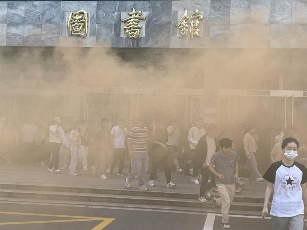 下午16时20分,图书馆副馆长侯波宣布演练开始,现场“浓烟滚滚”,图书馆工作人员迅速拨打校园“110”进行报警,并按下消防警报,现场工作人员根据图书馆消防应急预案要求启动现场疏散工作,遵照火场逃生技巧沉着指挥,师生们捂住口鼻,弯腰快速有序撤离图书馆。整个演练过程历时4分钟,做到了快速、安全、有序。