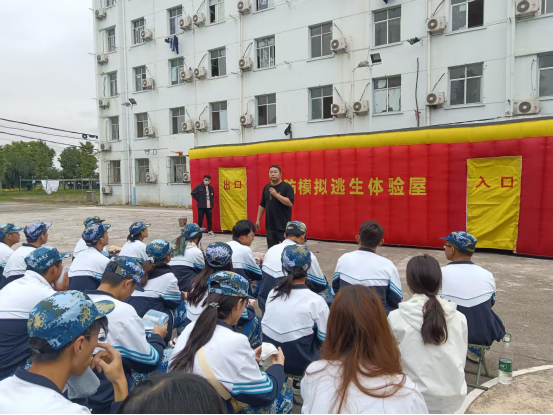 同学们在学校消防科老师指导下进行逃生演练,并按照“打湿毛巾、捂住口鼻、弯腰低姿,手扶墙壁”的逃生要领,依次进入疏散逃生屋进行模拟演练,顺利完成了本次演练活动。