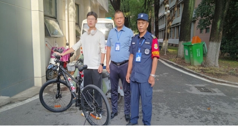 无独有偶,2025 年 9 月 14 日,24 级物电学院学生罗睿也遇到了财物 “失踪” 的情况。他停放在文科大楼附近、价值 1600 元的黑色山地赛车不翼而飞,情急之下前往校园 “110” 值班室报警。接警后,值班员迅速响应,立即通知巡逻队员前往监控中心调取周边视频。通过细致的视频追踪与调查,很快查明真相:文科大楼保安人员发现该自行车未上锁,为防止车辆丢失或被盗,便将其推至楼内安全区域暂时保管。经罗睿现场辨认确认无误后,保卫处工作人员将自行车交还给他,及时为学生挽回了经济损失。