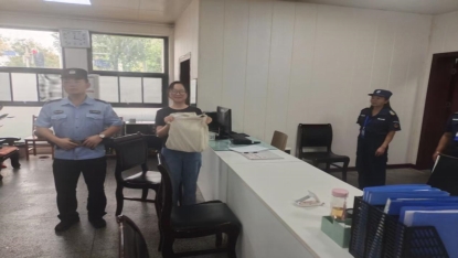 2025 年 3 月 24 日,22 级物电学院学生杨诗颖遭遇了一件让她 “大脑空白、满心慌乱” 的事 —— 装有笔记本电脑、手表及关键复习资料的白色书包不慎丢失。在向周边同学求助无果后,她在同学建议下紧急前往校园 “110” 值班室报案。值班人员第一时间安抚学生情绪,详细了解书包特征与丢失时间、地点等信息后,立即前往校园监控中心调阅相关视频资料。经过耐心排查与多方核实,最终确认书包被一名考生捡到并交给了校园巡逻队员。在保卫处工作人员和驻校民警的共同见证下,杨诗颖顺利领回了失物,避免了重要物品丢失带来的损失与麻烦。