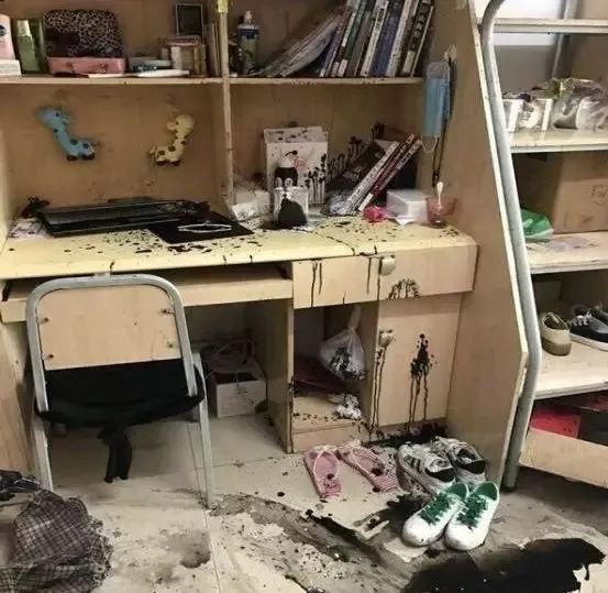 重庆某学院两个大三女生因在宿舍养猫一事起了争执,养猫女生趁另一人不在时,在其被褥、桌椅等处泼满了墨水。