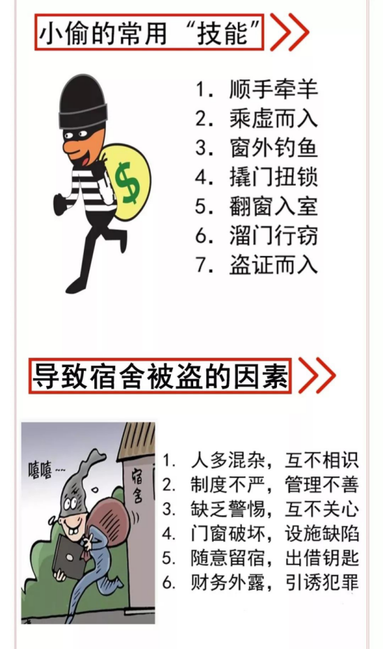 今年,湖北武汉开发区(汉南区)发生了一起校园盗窃案,有人溜进了辖区一所学校内的学生宿舍,并盗走了数个笔记本电脑、手机、钱包等财物。据统计,丢失财物涉案价值达2万多元。案发时间在早晨6点到8点之间,在这个时间段,学生们一般都是起床洗漱,到食堂就餐或前往图书馆早读,嫌疑人就是掌握了学生作息规律,采取“滥竽充数”的方式,伪装成在校学生,偷偷混进人群,巧妙地逃过了宿舍管理员的眼睛。