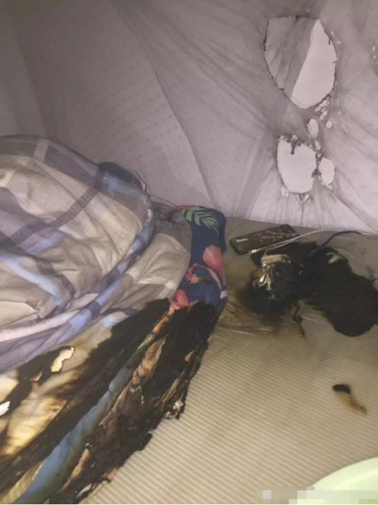 广东一大学生充电宝半夜在宿舍无故自燃,被子床垫均被烧焦!